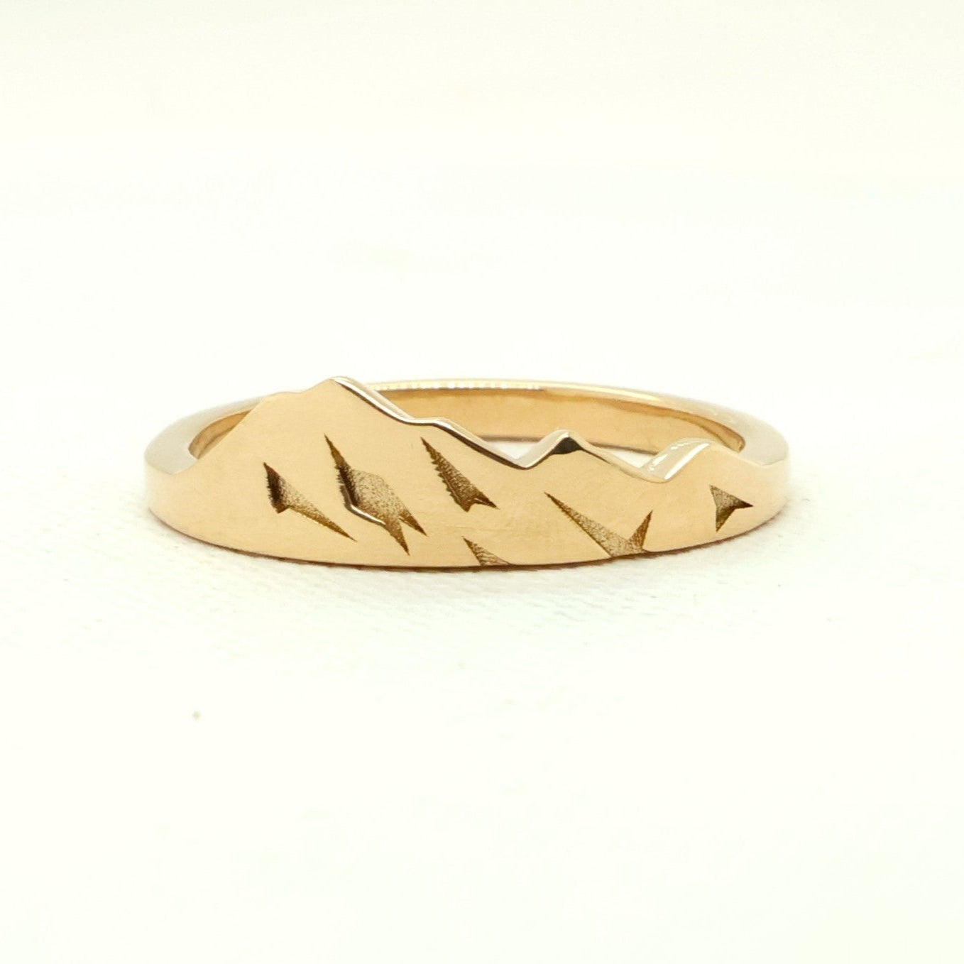Begin your journey with our handcrafted mountain base rings - the foundation for a stack that tells your story. Inspired by rugged peaks and wild love, each ring is crafted to capture where it all begins.