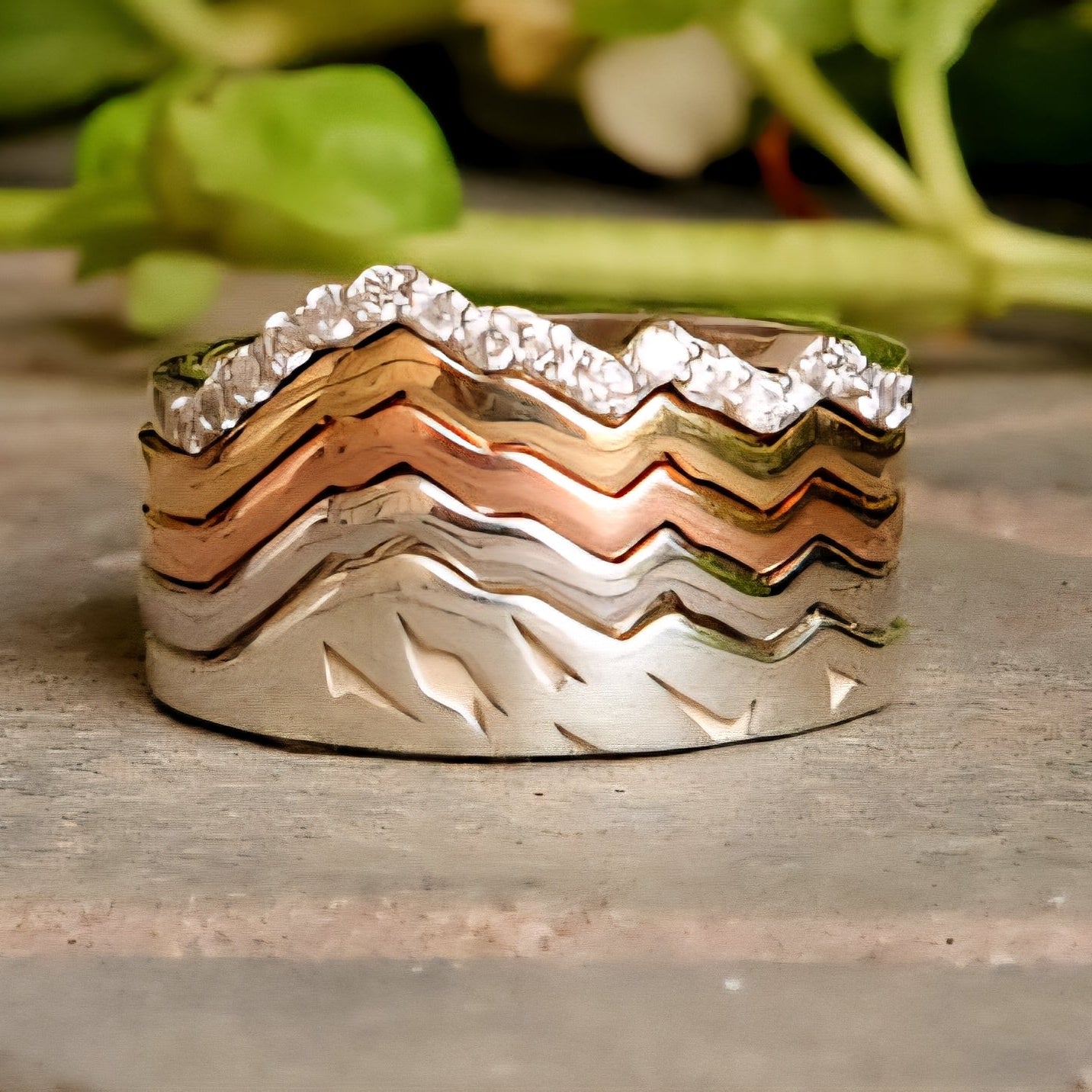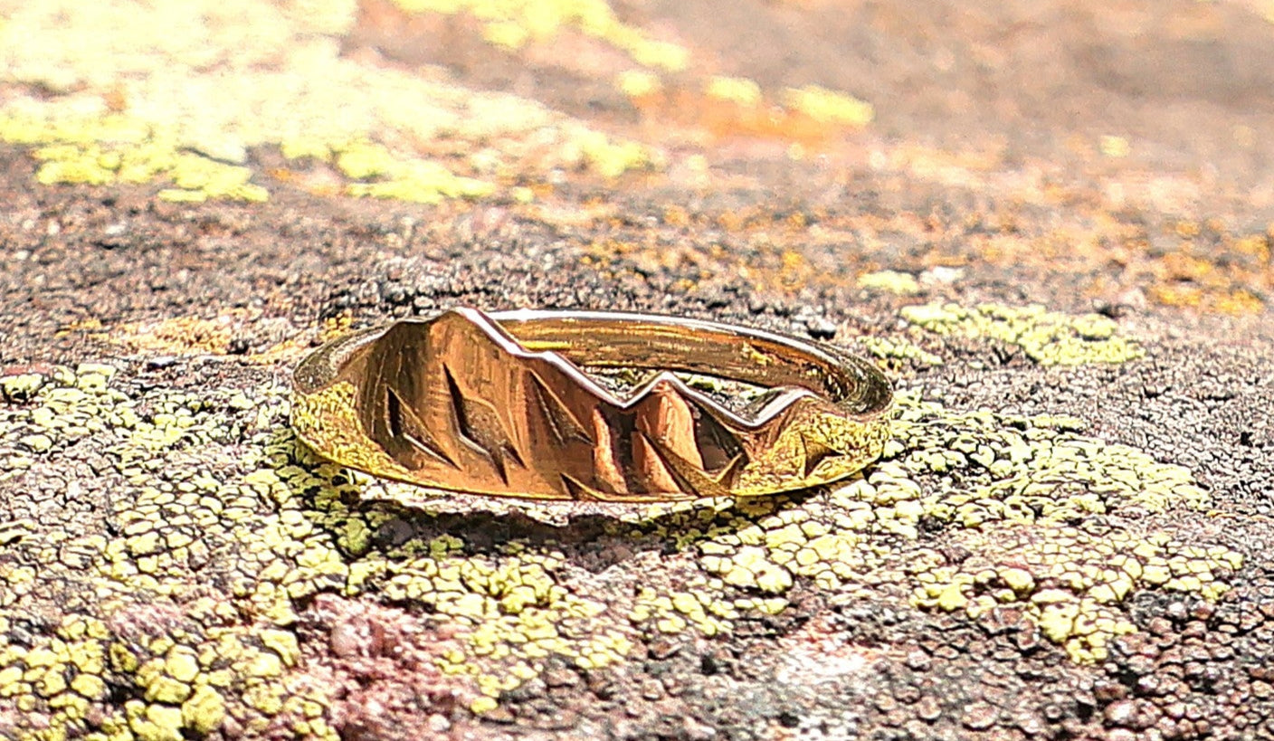 Begin your journey with our handcrafted mountain base rings - the foundation for a stack that tells your story. Inspired by rugged peaks and wild love, each ring is crafted to capture where it all begins.